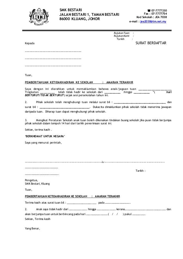 Format Surat Amaran Terakhir Untuk Ketidakhadiran Ke Sekolah Pdf