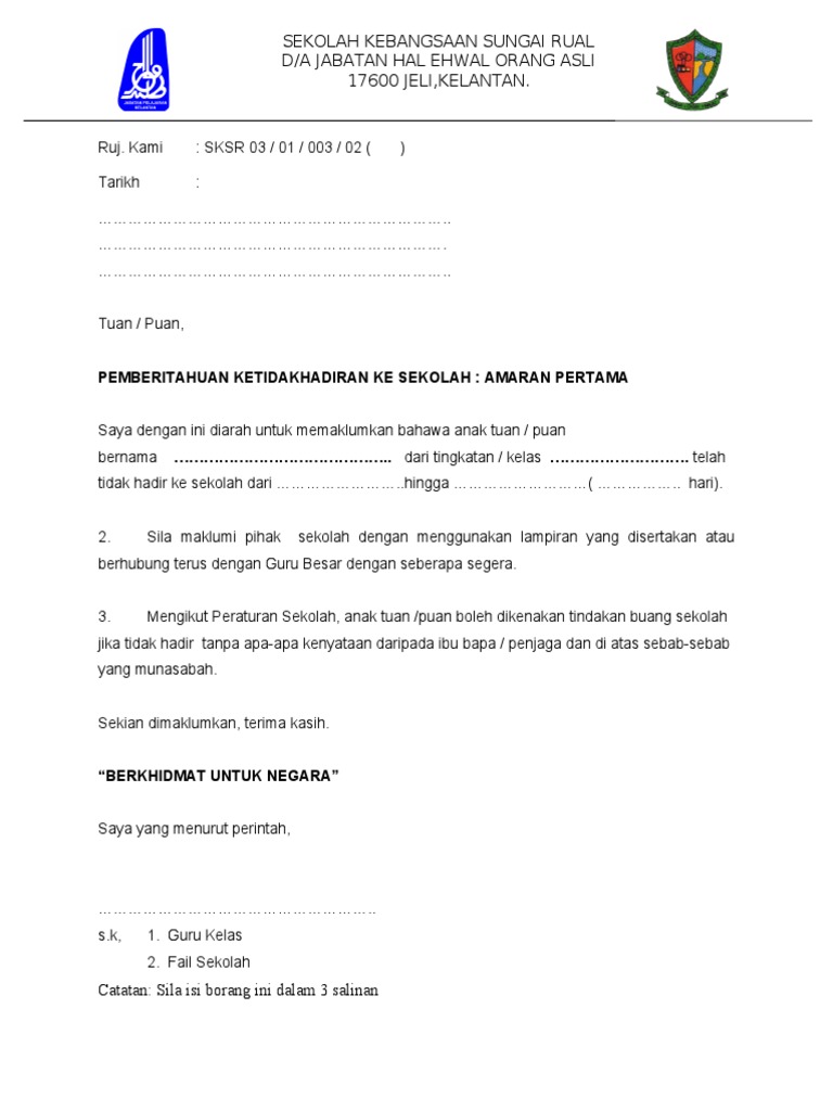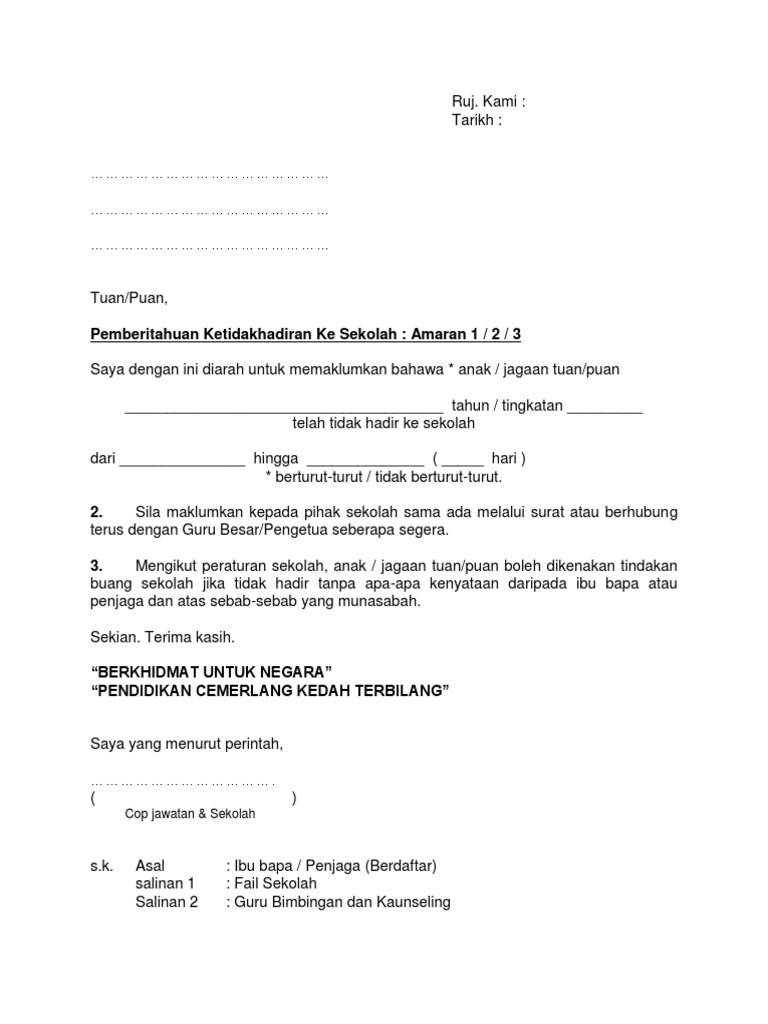 Surat Amaran Tidak Hadir Ke Sekolah Pdf